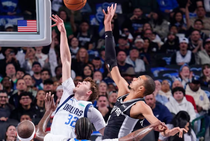 但比赛的胜负手,在于两人如何影响球队。文班亚马从开场就展现出恐怖的进攻统治力,个人包揽球队前10分,用三记三分球瞬间改变了独行侠的防守阵型。他不仅是终结点,更是进攻轴心,他的高位策应和吸引包夹的能力,为队友创造了大量空位机会。马刺全场命中的17记三分球,很多都源于文班亚马带来的防守撕裂。